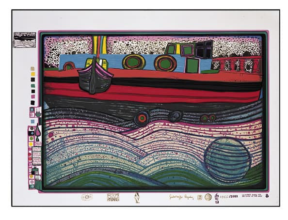 Acheter une reproduction de tableau de Hundertwasser Regentag On Waves Of Love à notre atelier